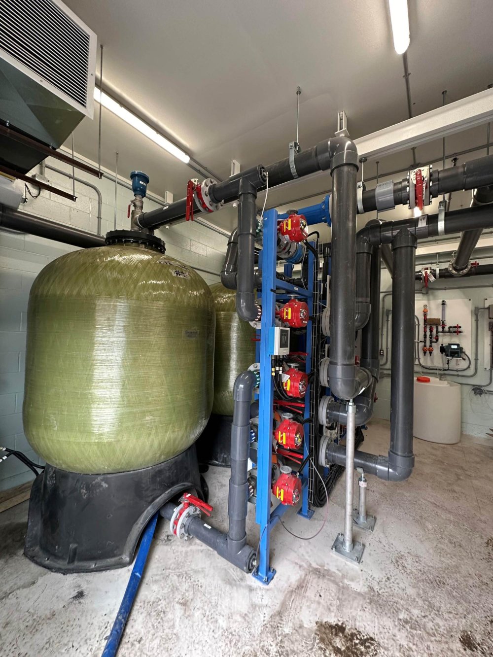 - Trois filtres au sable vert en fibre de verre de 64 pouces chacun